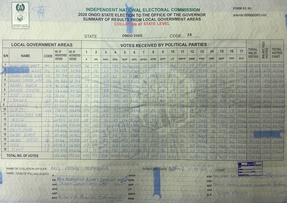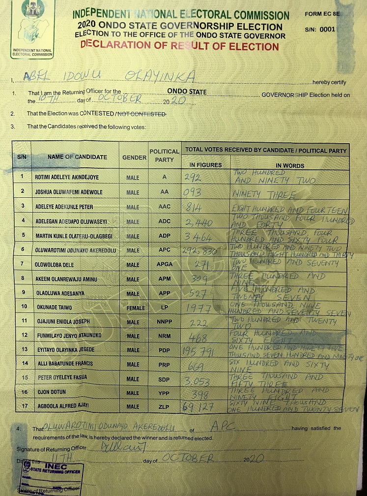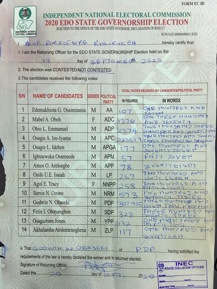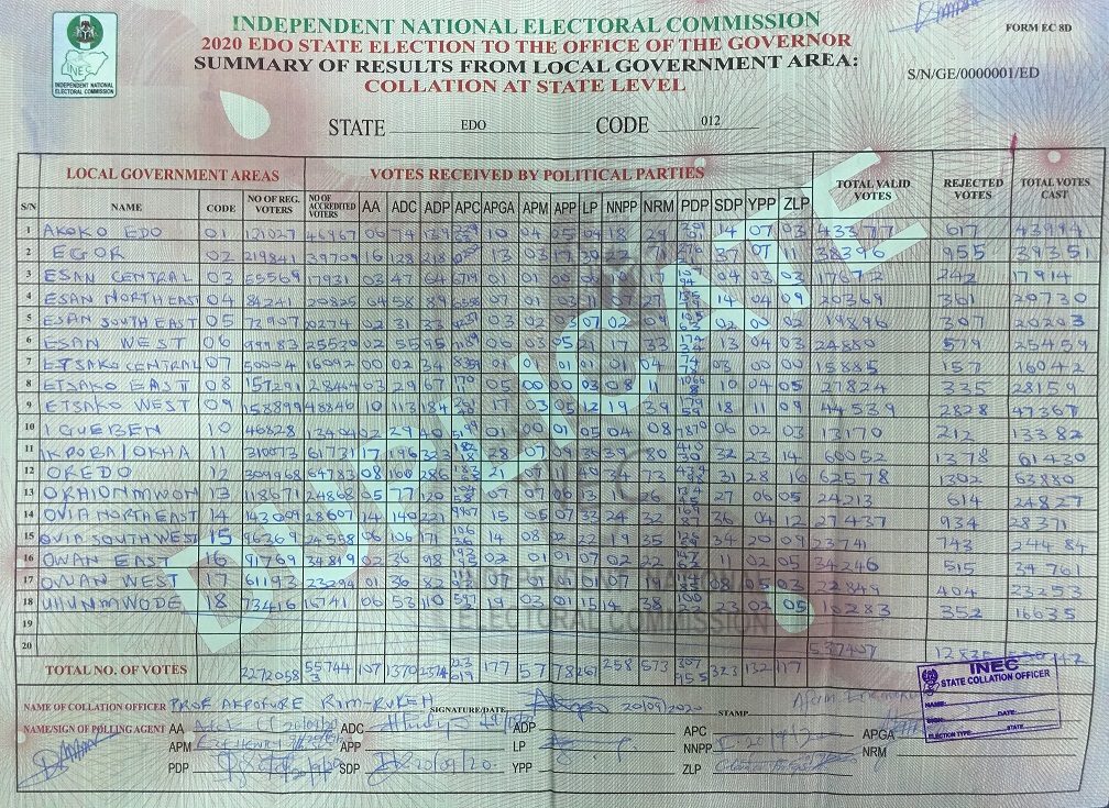 Election Results 2023 Presidential Election 2023 Governorship Election 2023 Senatorial District Election 2023 House of Representatives Election 2023 House of Assembly Election 2019 Presidential Election 2019 Senatorial District Election 2019 House of Representatives Election 2019 House of Assembly Election 2019 Governorship Election AbiaAdamawaAkwa IbomBauchiBenueBornoCross RiverDeltaEbonyiEnuguGombeImoJigawaKadunaKanoKatsinaKebbiKwaraLagosNasarawaNigerOgunOyoPlateauRiversSokotoTarabaYobeZamfara 2020 Edo State Governorship Election Edo 2020 Election Result 20f2Edo 2020 Election Result 20f2 2020 Ondo State Governorship Election Ondo Governorship Election 2020Ondo Governorship Election 2020