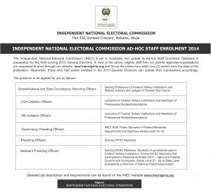 INEC Advert On 2014 Ad-Hoc Staff Enrolment