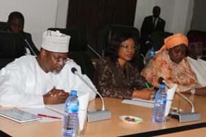 Chairman of INEC, Prof. Attahiru M. Jega, National Commissioners, Dame Gladys Nne Nwafor, Hajia Amina Zakari and Amb. Ahmed Wali