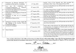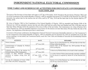 Time Table and Schedule of Activities for Osun State Governorship Election, 2018